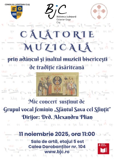 Marți, 11 noiembrie 2025, de la ora 11:00, va invităm într-o călătorie muzicală prin adâncul și înaltul muzicii bisericești de tradiție răsăriteană, în care vom fi însoțiți de către minunatul Grup vocal feminin "Sfântul Sava cel sfințit", dirijat de domnul Drd. Alexandru Plian, cărora le mulțumim pentru acest mini concert…