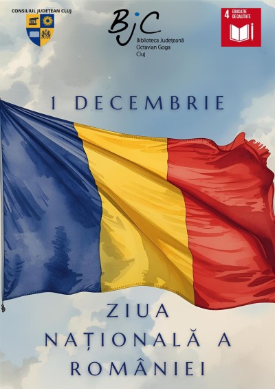 În perioada 26 noiembrie – 4 decembrie 2025, Biblioteca Județeană „Octavian Goga” Cluj organizează o serie de evenimente prilejuite de Ziua Națională a României. Astfel, copiii din diferite grădinițe și școli clujene vor avea posibilitatea să participe, atât la sediul central, cât și la filialele bibliotecii, la activități ce vor avea ca temă Marea Unire, iar publicul larg este invitat să ia parte la atelierul tematic de creativitate, la ora de lectură despre Marea Unire și la expozițiile organizate.
