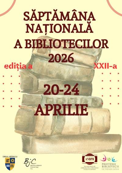 Biblioteca Judeţeană „Octavian Goga” Cluj vă invită să participați în perioada 20-24 aprilie 2026 la activitățile dedicate Zilei Internaționale a Cărții și Drepturilor de Autor și Zilei Naționale a Bibliotecarului!