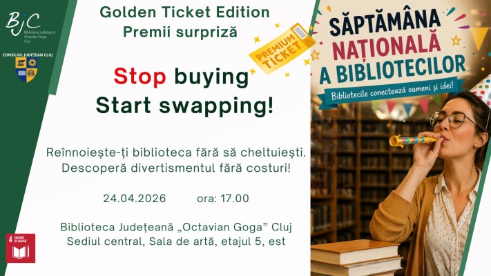 Cu ocazia Săptămânii Naționale a Bibliotecilor, Biblioteca Judeţeană „Octavian Goga” Cluj organizează o nouă ediție a campaniei Stop buying. Start swapping, schimb de cărți și jocuri.
