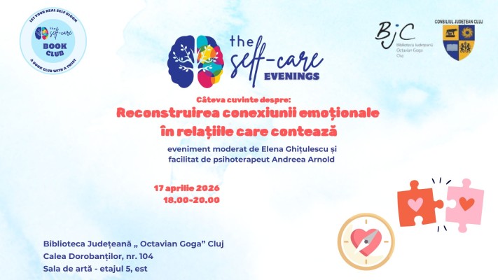 Începând cu luna martie, Secția de împrumut pentru adulți și artă a bibliotecii vă invită la o serie de întâlniri cu teme din sfera dezvoltării personale și psihoterapiei.